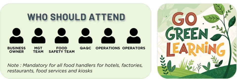 Our Corporate Training programs are your essential stepping stones for your staff and organization to understanding best practices in food safety, quality, environmental management, occupational safety and health and halal compliance. This is where confident compliance and effective practices begin!