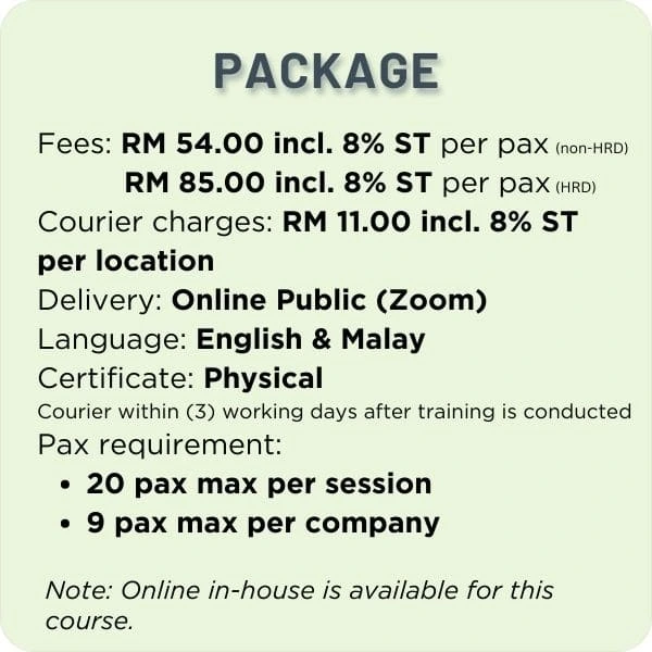 All courses are 100% claimable under HRD Corp Claimable Course, making it easier for you to invest in your team’s development.