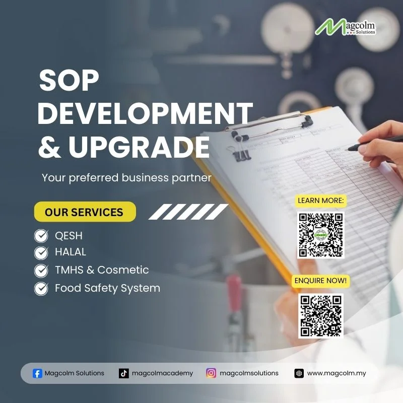 Optimize your operational processes with our SOP Development and Upgrading Advisory service. We ensure your Standard Operating Procedures are effective, compliant and tailored to your specific needs. Let us assist you create and enhance SOPs that meet hygiene requirements, support productivity and adhere to food safety certification standards.