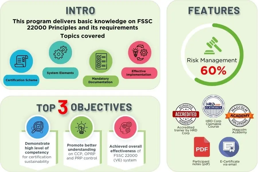 Get ready to dive into our FSSC 22000 (V6) Requirement Training! Join us for this enjoyable and informative training and become a food safety hero in your workplace! Together, we can ensure a safer food environment for everyone!