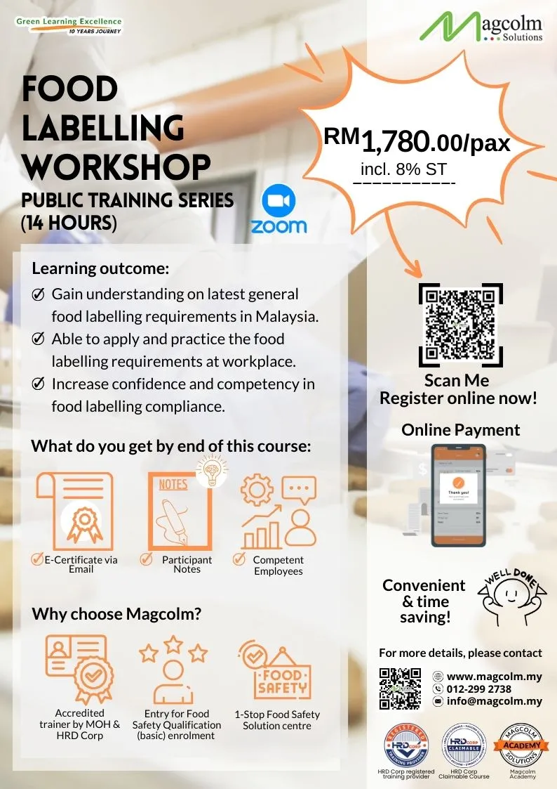 Registration is closed fourteen (14) working days before the training date based on first come, first serve basis.