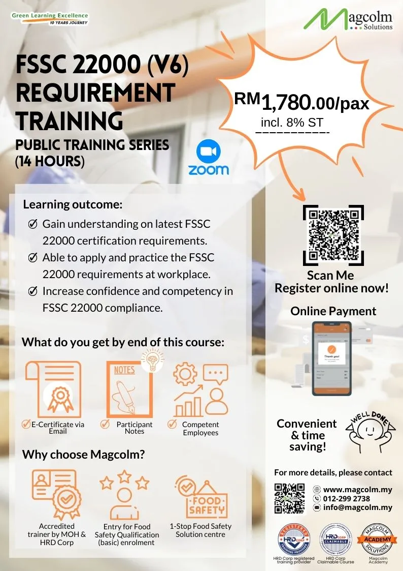 Registration is closed fourteen (14) working days before the training date based on first come, first serve basis.